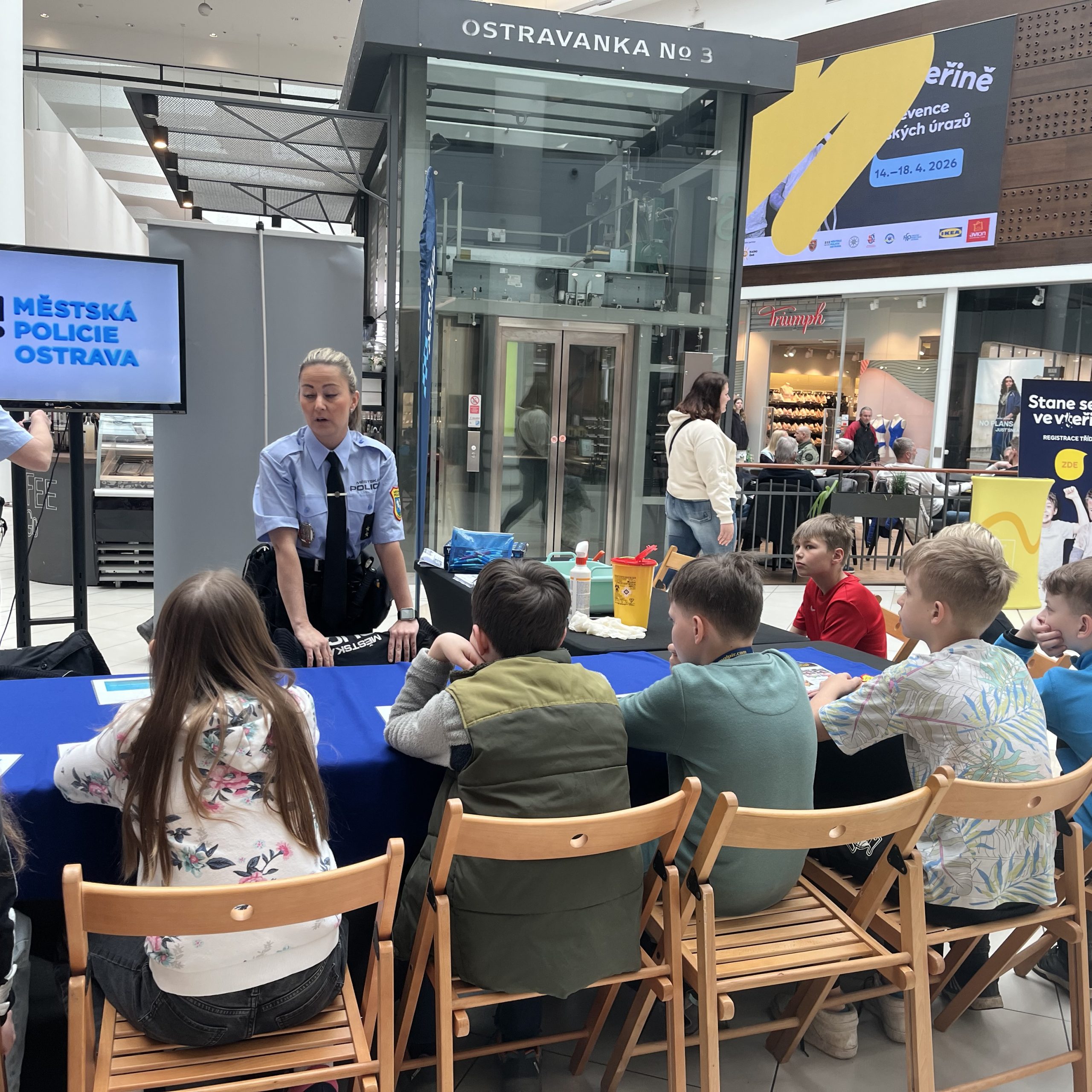 V polovině dubna (15. 4.) vyměnili naši páťáci školní lavice za interaktivní trasu v ostravském OC Avion. Akce „Stane se to ve vteřině“ pořádaná ve spolupráci se složkami Integrovaného záchranného systému (IZS) nabídla dětem pohled do světa bezpečnosti i první pomoci.