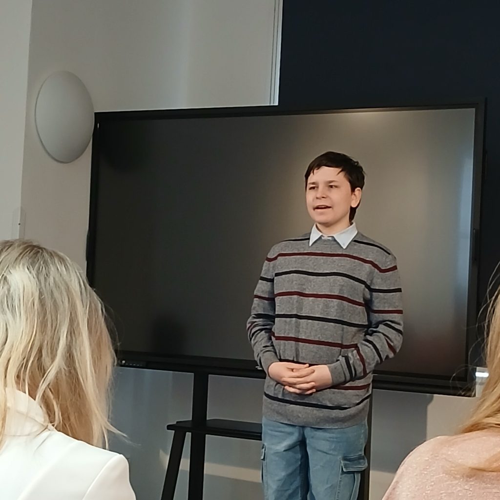 Jan si pro své vystoupení vybral báseň „O Captain! My Captain!“ od amerického básníka Walta Whitmana, kterou přednesl s velkým nasazením a zaujetím. Přestože se v silné konkurenci neprobojoval na stupně vítězů, podal velmi kvalitní výkon a důstojně reprezentoval naši školu.